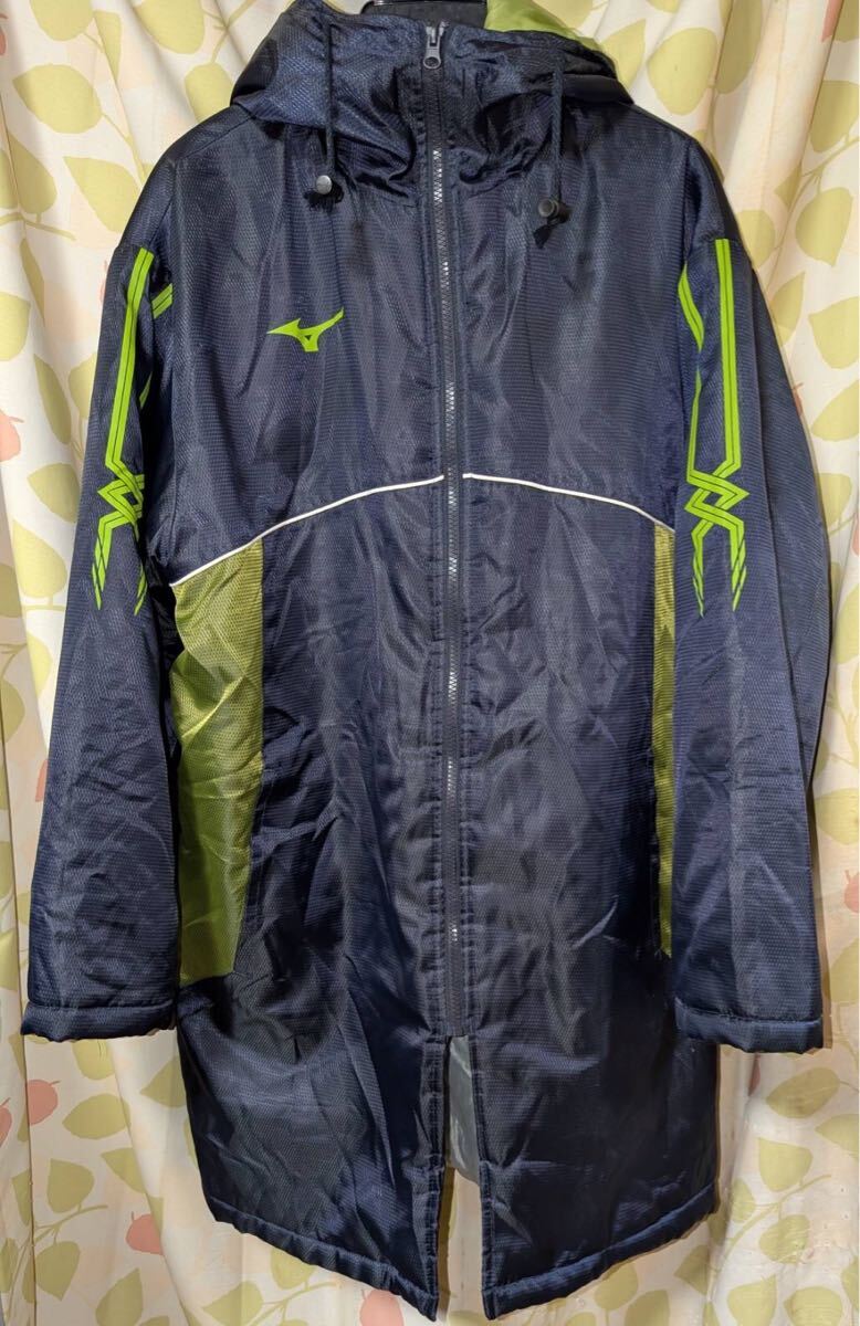 MIZUNO ベンチコート M 紺×ライムグリーン 箱根駅伝モデル フード付き