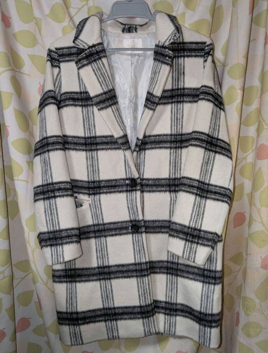 VIS チェスターコート ホワイト・ブラックチェック S チェック柄