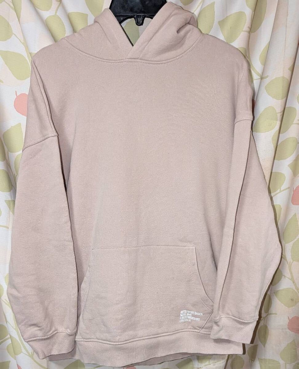 ZARA ピンクベージュ 裏起毛 フード付きパーカー M カンガルーポケット付き