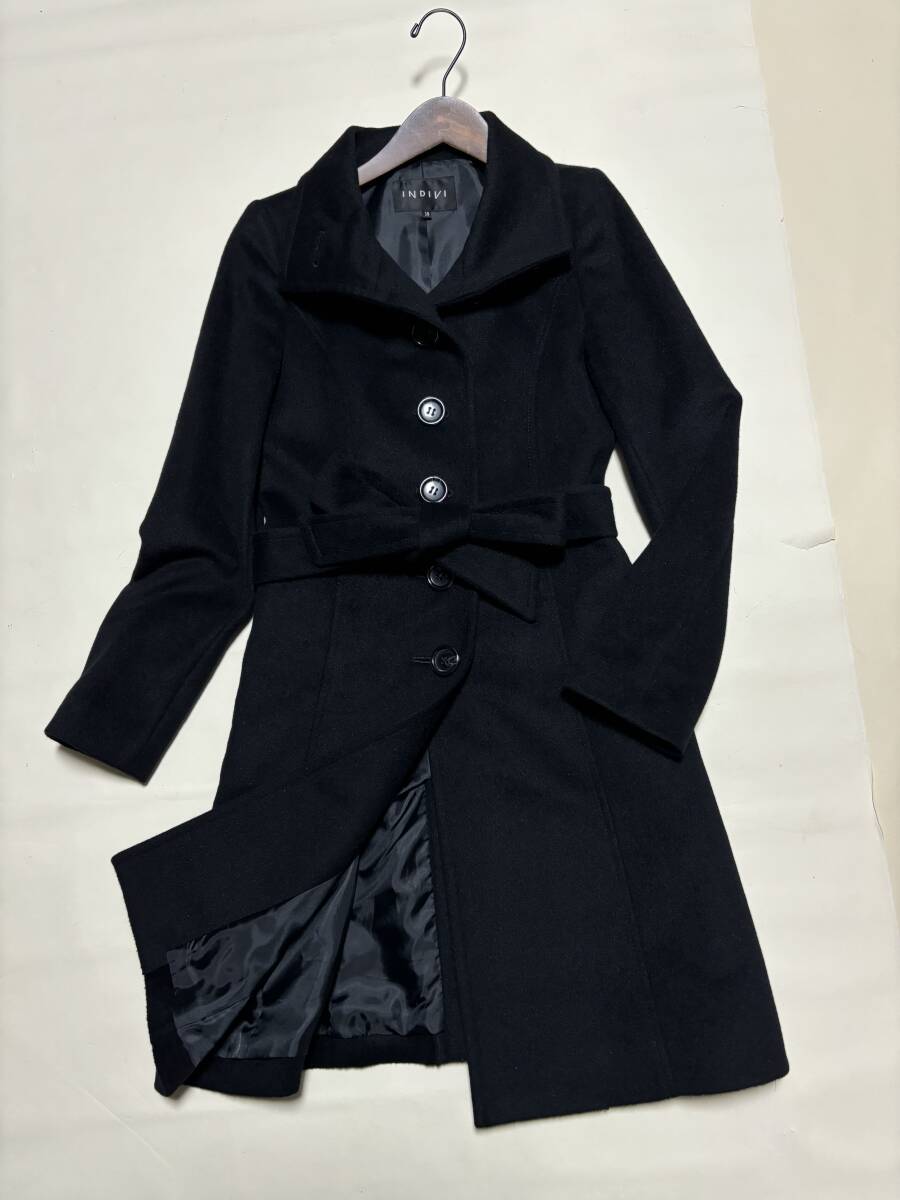 インディヴィ【美品】INDIVI アンゴラ×ウール コート ベルト付き 美シルエ