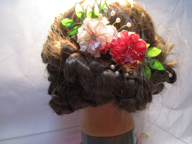 赤 新品 未使用 髪飾り ヘアーアクセサリー ハンドメイド ディップフラワー パ