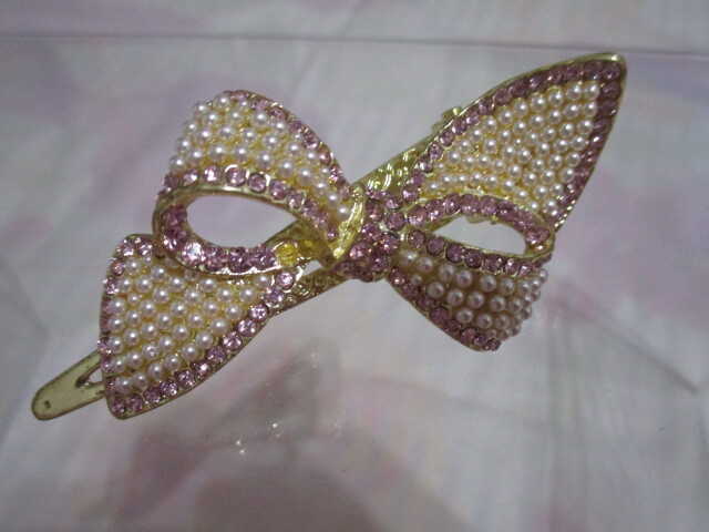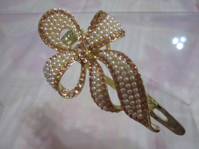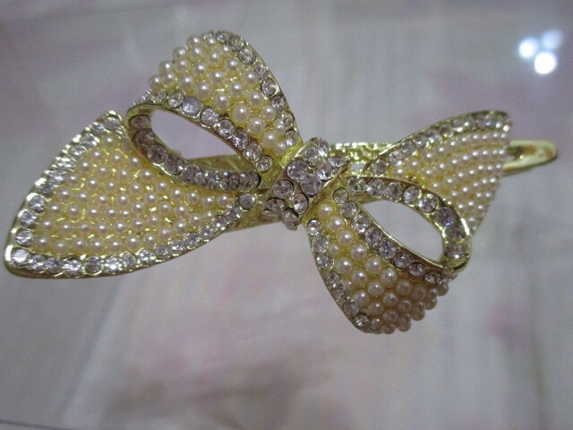 ヘアーアクセサリー クリップ りぼん パール 金 未使用
