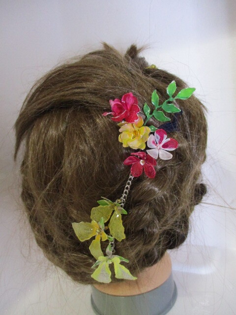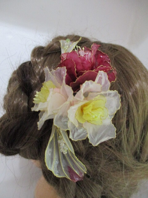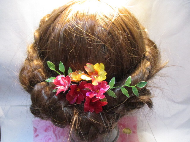 赤 黄 新品 未使用 髪飾り ヘアーアクセサリー ハンドメイド ディップフラワ