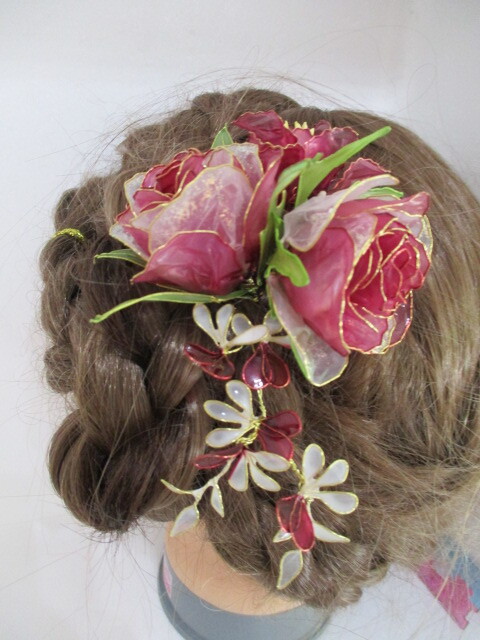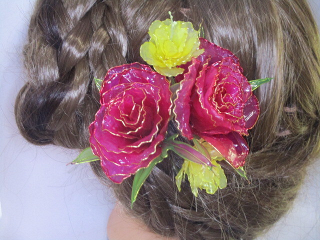 赤 黄 薔薇 ヘアーアクセサリー DIPフラワー アメリカンフラワー 未使用 ハ