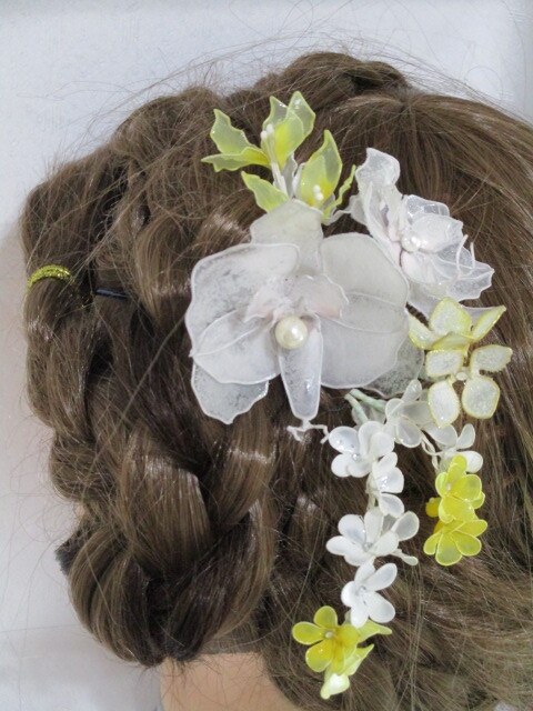 白 黄 新品 未使用 髪飾り ヘアーアクセサリー ハンドメイド ディップフラワー