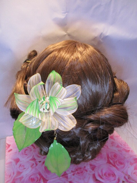 ユリ パール 造花 髪飾り 未使用 ヘアーアクセサリー 緑