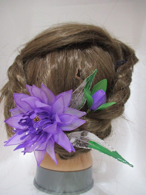 紫 ハンドメイド 髪飾り ヘアーアクセサリー 未使用 ディップフラワー
