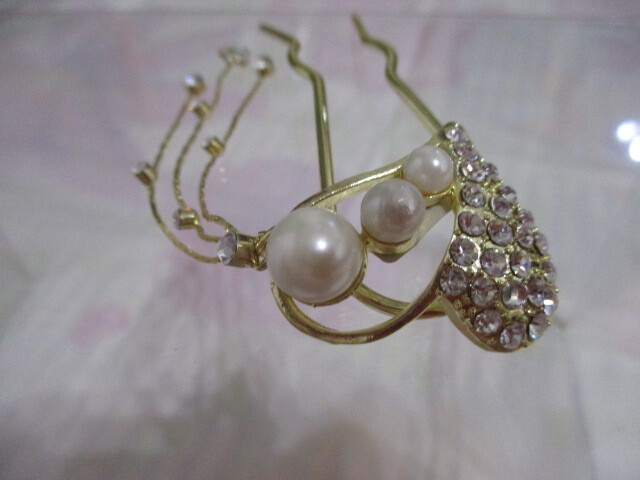 ハート パール ラインストーン かんざし 未使用 髪飾り ヘアーアクセサリー