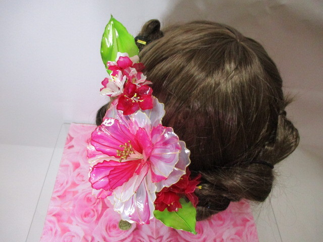 赤紫 薔薇 クリアー 小花 アメリカンフラワー 髪飾り 未使用