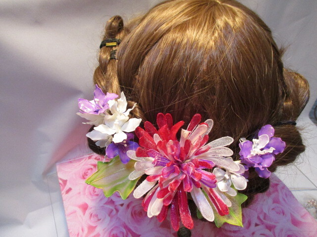菊 赤、紫 白 Uピン 髪飾り ヘアーアクセサリー 成人式 結婚式 未使用 小花