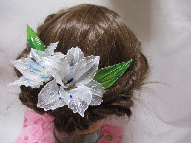 白 青 ユリ ヘアーアクセサリー 髪飾り 未使用 パール アメリカンフラワー