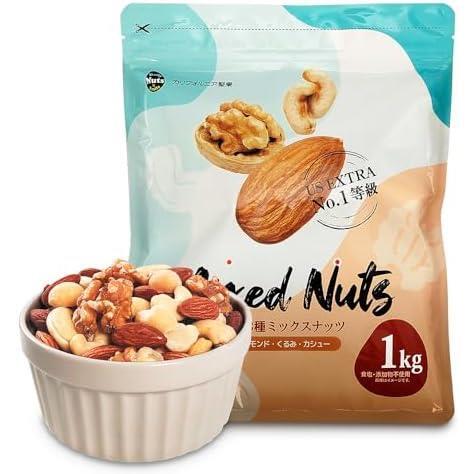 定番3種ミックスナッツ 1kg 素焼き アーモンド、くるみ、カシューナッツ 産地