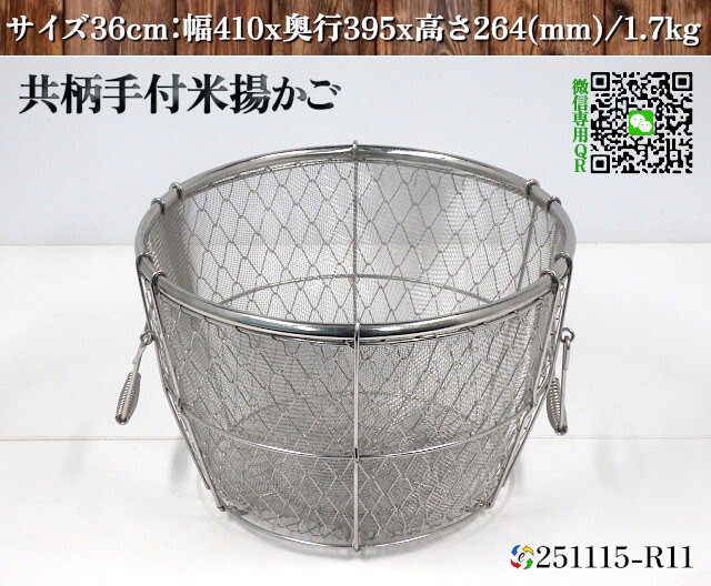 共柄 手付 米揚かご ステンレス製 外寸:幅410x奥行395x高さ264(mm