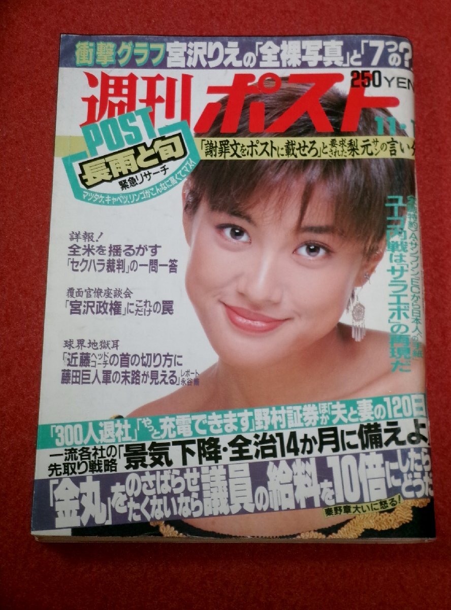1207さ2★週刊ポスト平成3年11/1中島宏海(表紙)/西川峰子【宮沢りえ「衝