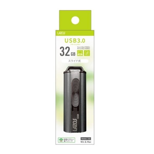 新品 LAZOS USB3.0/スライド式 USBフラッシュメモリー 32GB
