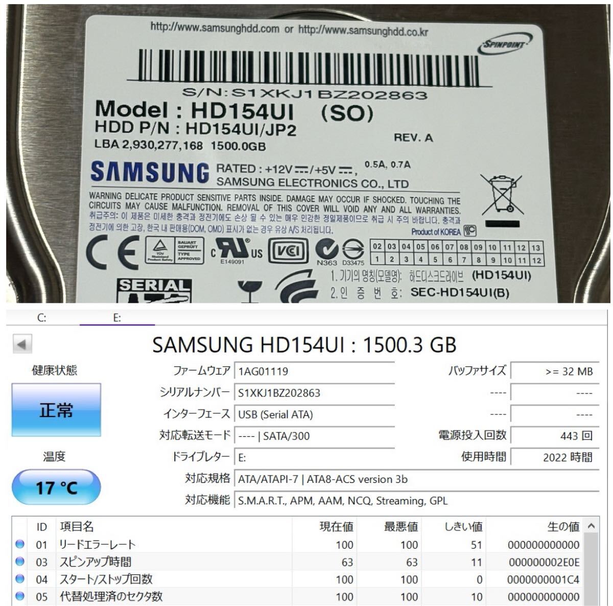 1.5TB SAMSUNG HD154UI 1.5TB 3.5インチHDD 内