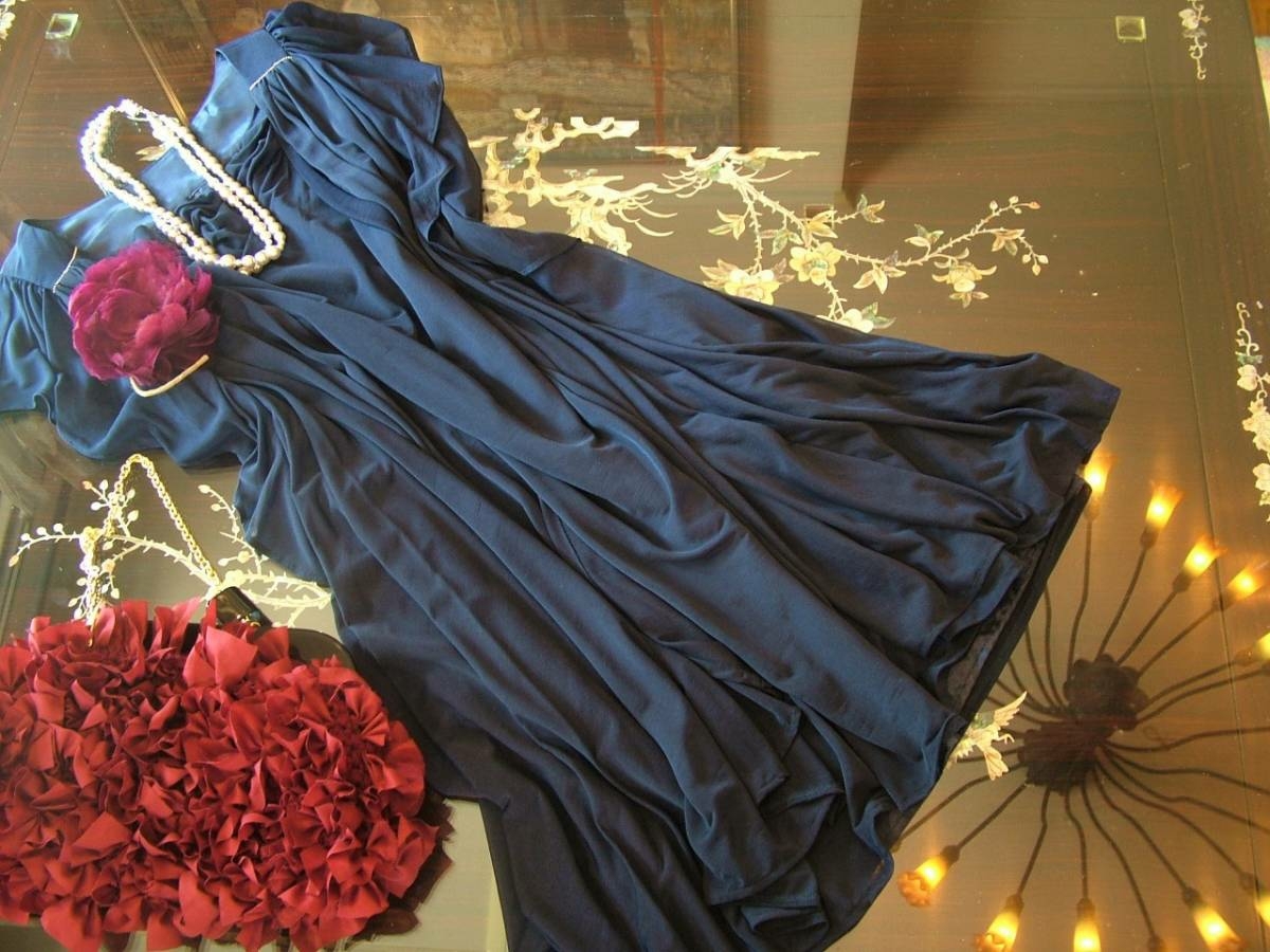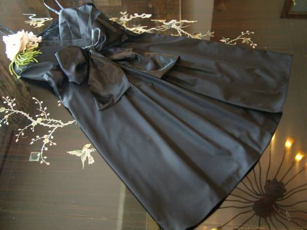 9号 紺 リボン シャンタン ドレス ワンピース パーティー su171
