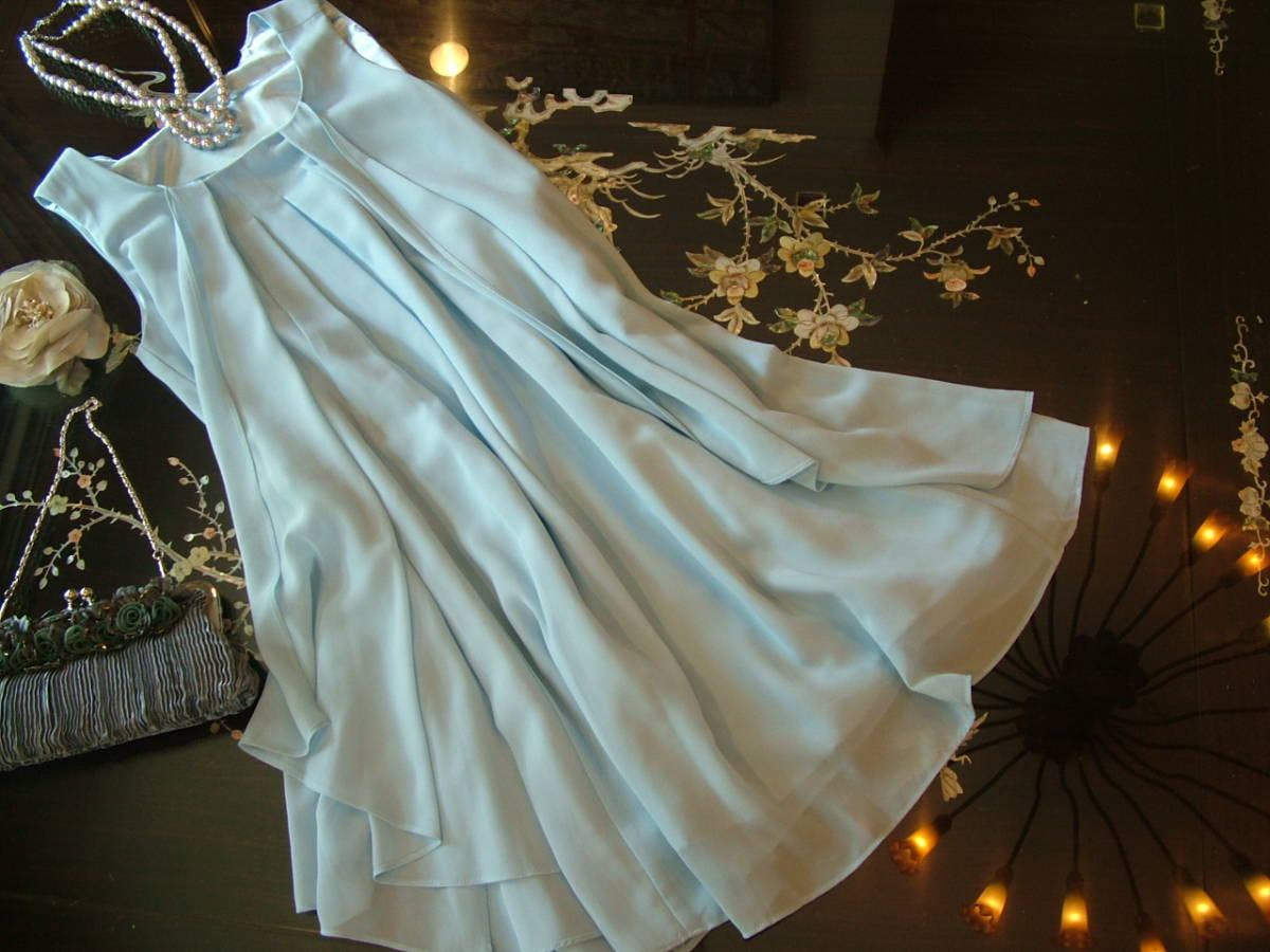 セール アウトレット 限定 フォーマル ワンピース ドレス 水色 フリル 9号