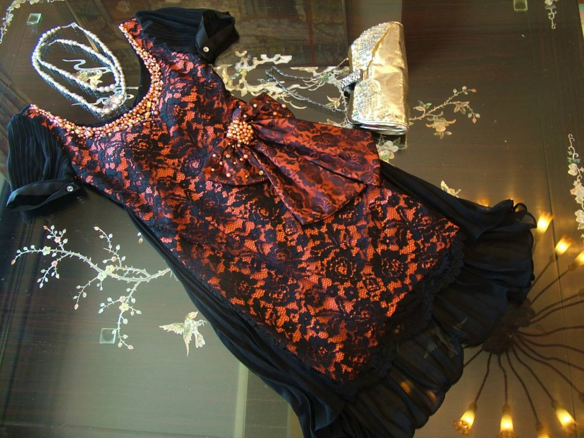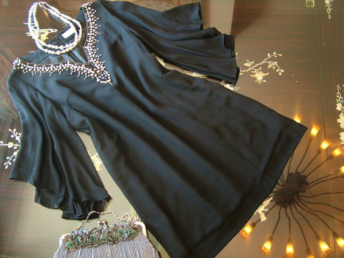 グレース クラス 黒 ワンピース ドレス ビジュー パール 装飾 シルク 結婚式
