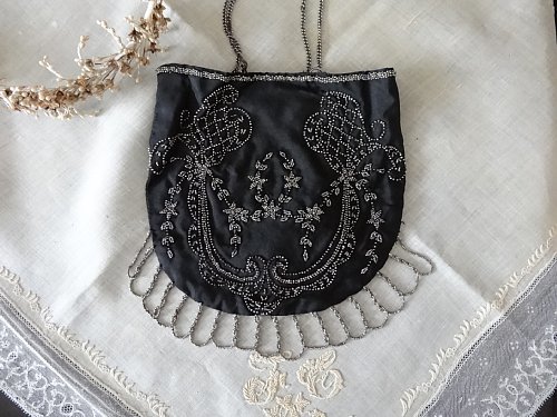 Grace アンティーク フランス 1920頃 花模様の カットワーク と レー