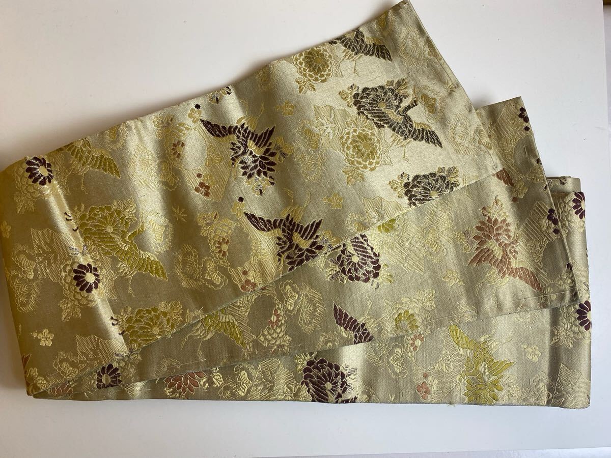 未使用 正絹 300cm 金糸 半幅帯 帯 仕立て糸付き