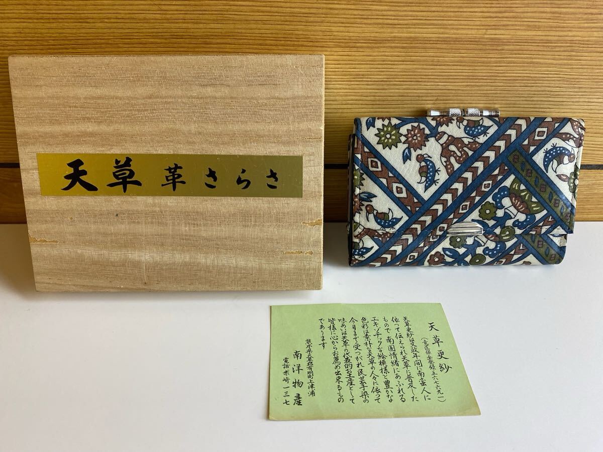 未使用 天草革さらさ がま口 財布 桐箱入り