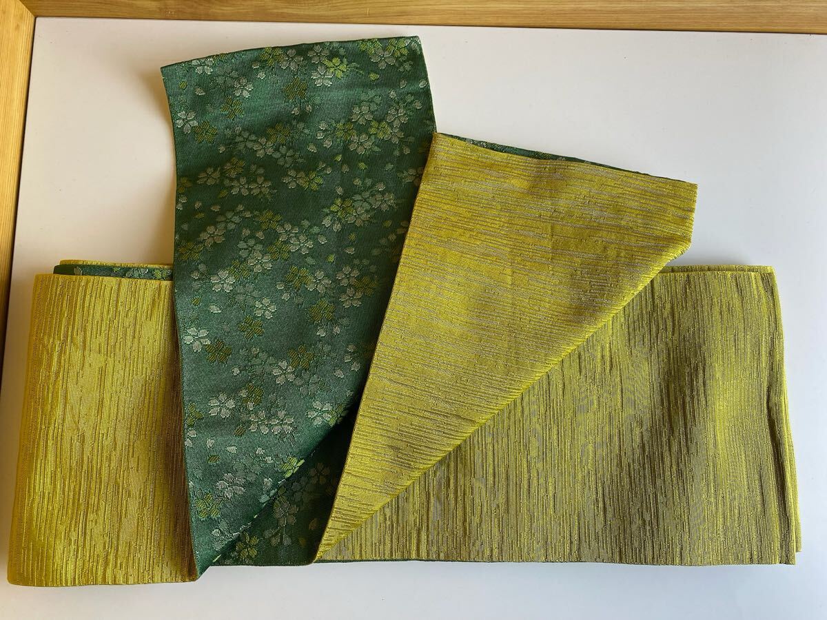 美品! 半幅帯 360cm 化繊 緑 さくら 帯 浴衣帯