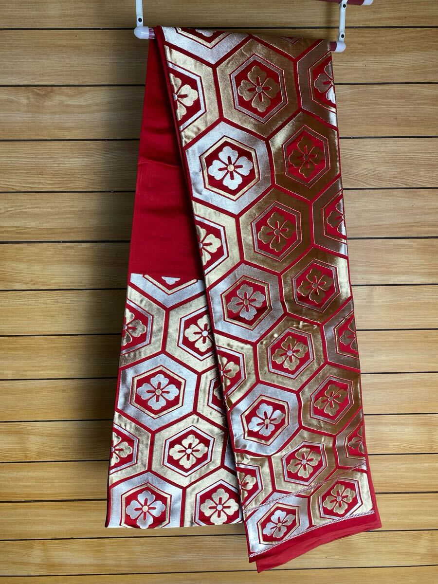 美品! 正絹 名古屋帯 330cm お太鼓柄 赤 おび