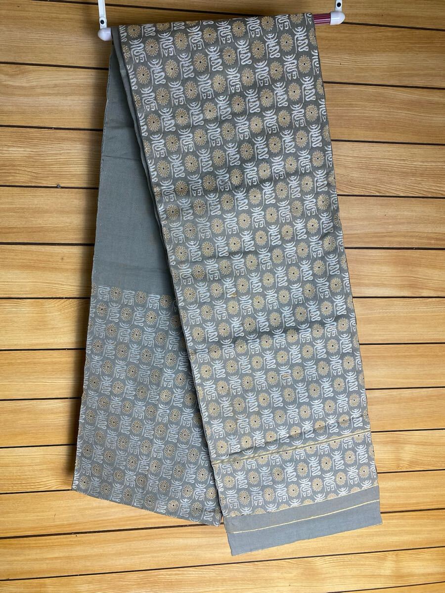 正絹 西陣織 368cm 六通柄 金糸 菊紋 袋帯 帯 グレー