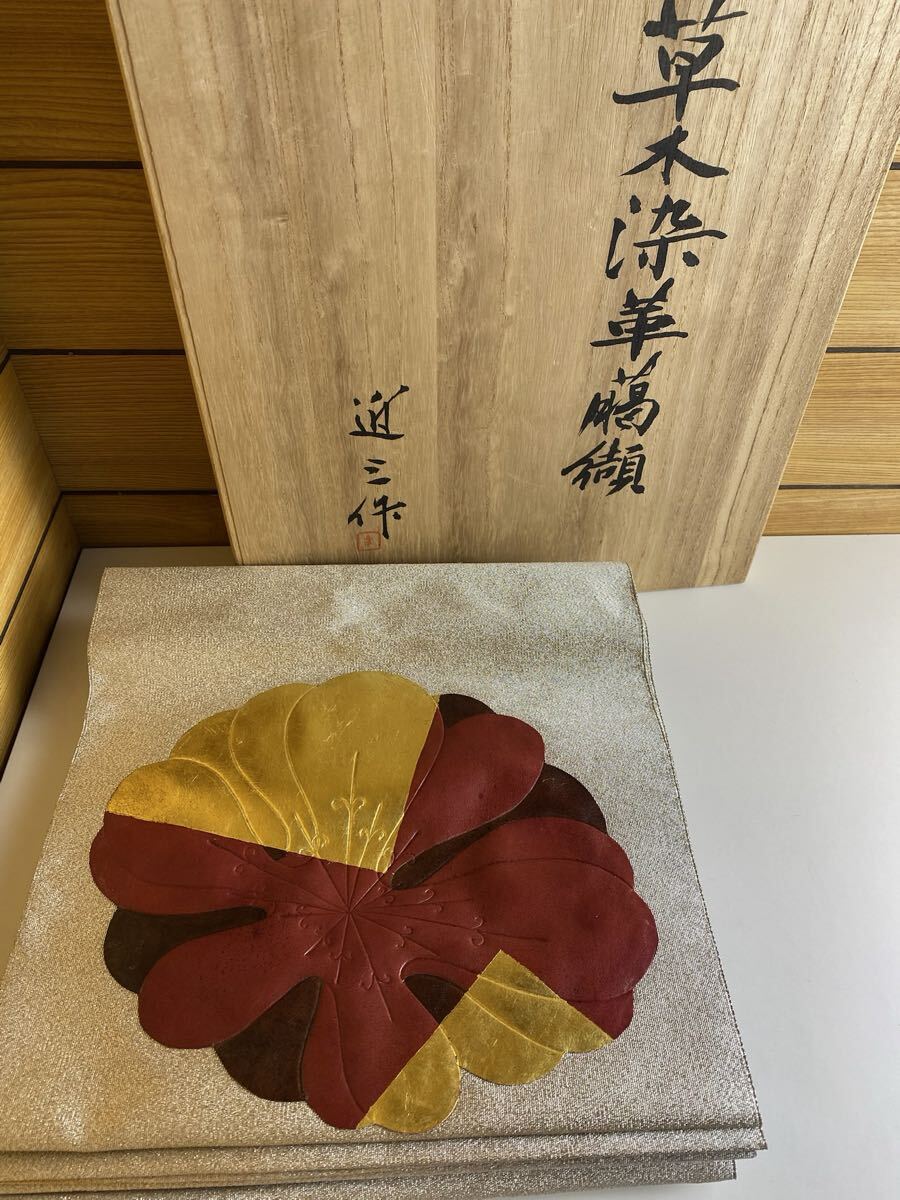 名古屋帯 お太鼓柄 草木染 355cm 綴織り 帯 桐箱入り