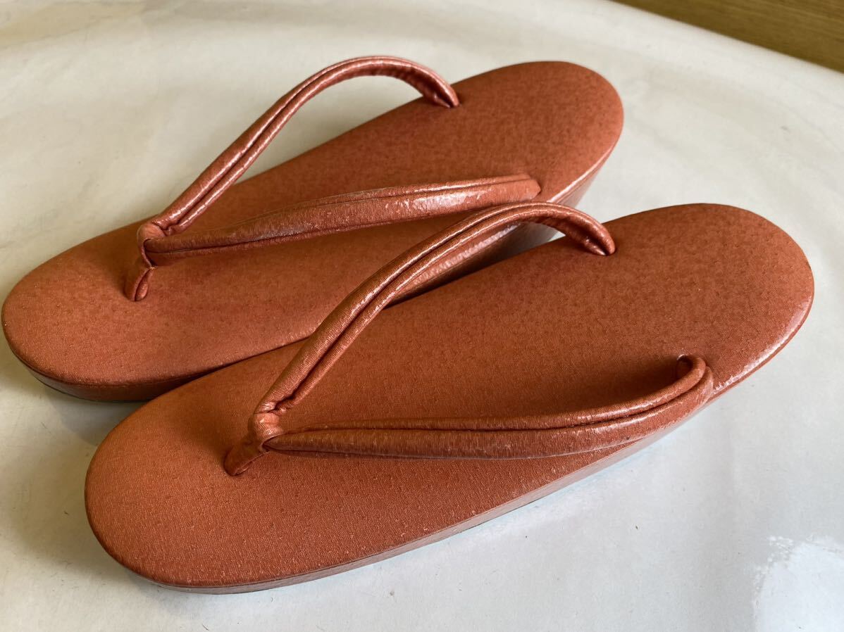 美品! 布 草履 22cm 色無地 赤 エナメル 加工