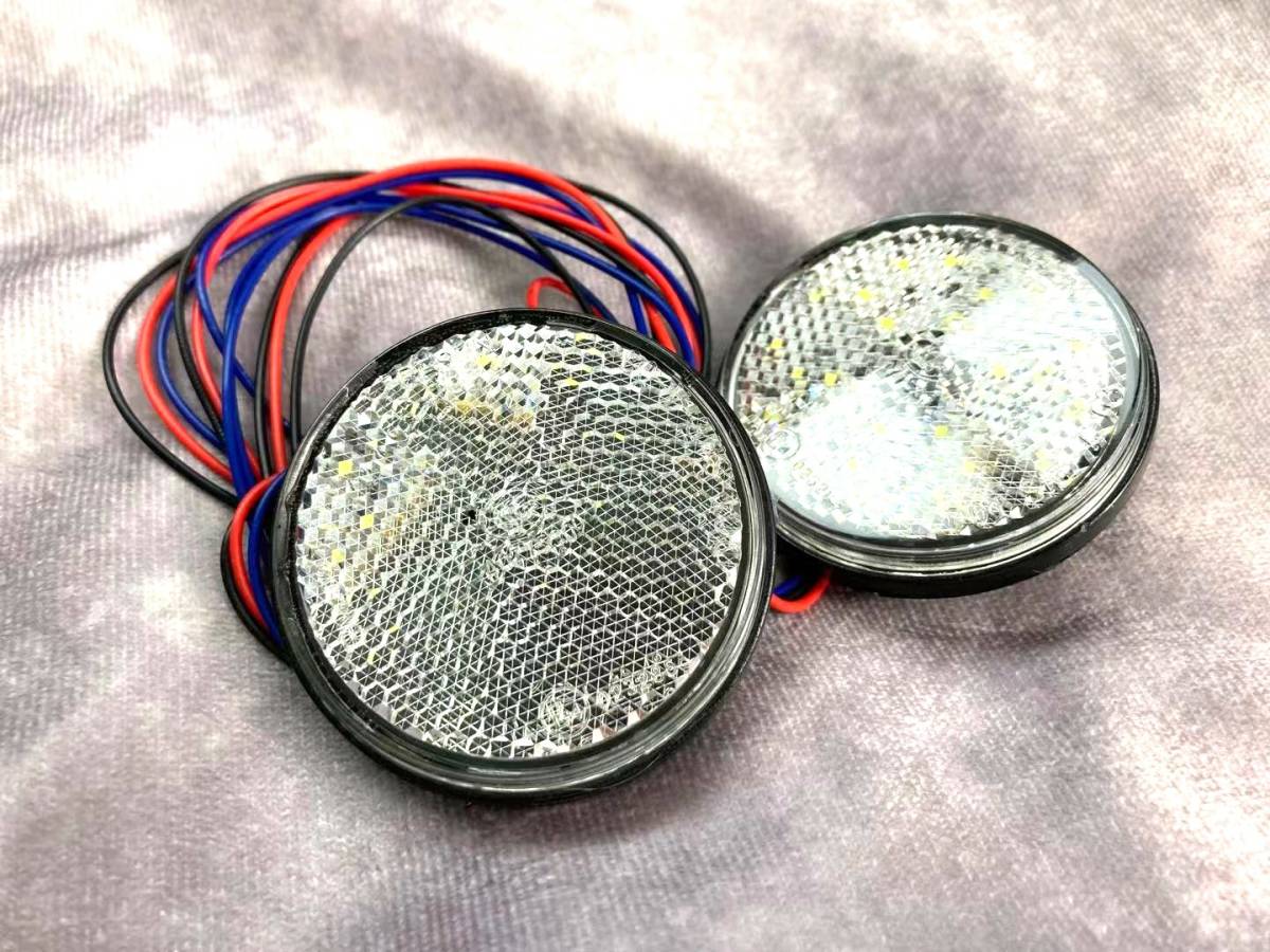 LEDリフレクター 12V 汎用 反射板 丸形 ダブル発光 白 2個セット 新品