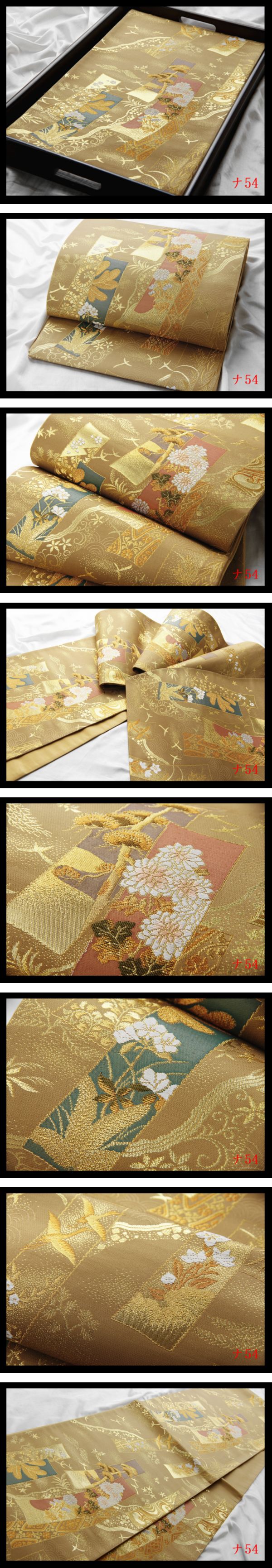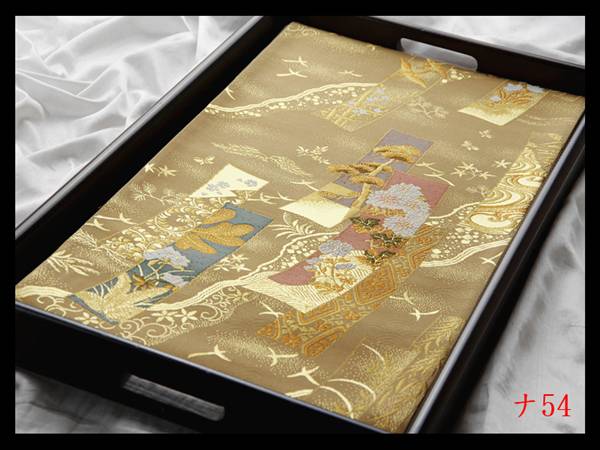 【ナ54】厳選逸品 短冊草花紋 榛色地 気品豊かに 正絹純金糸六通高級美術袋帯 新品同様 検★着物名古屋帯和装小物帯締め 收藏