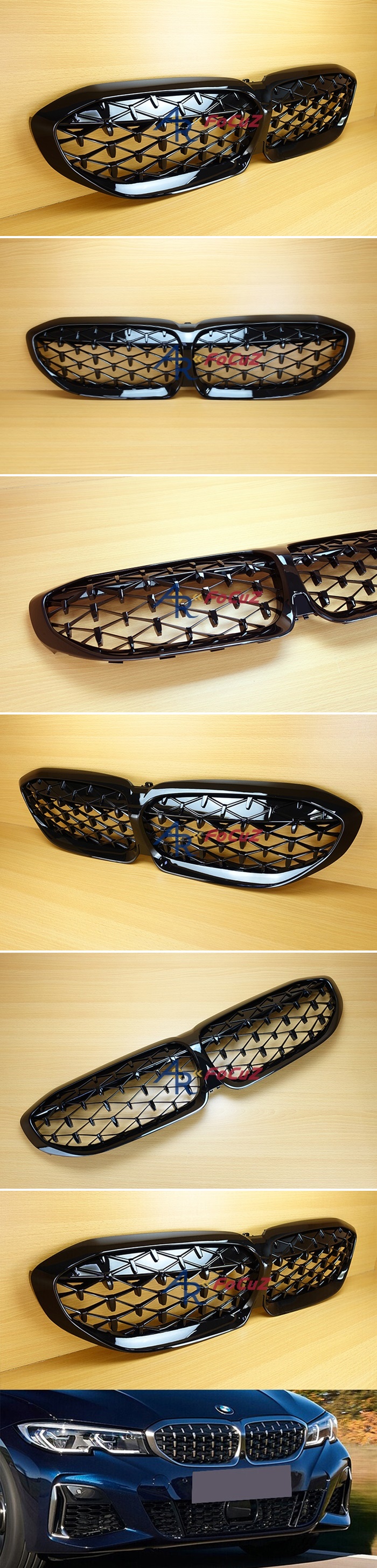 | BMW 3シリーズ G20 G21 前期型専用 ABS製 ブラックダイヤモンド フロントグリル セット 光沢黒 |