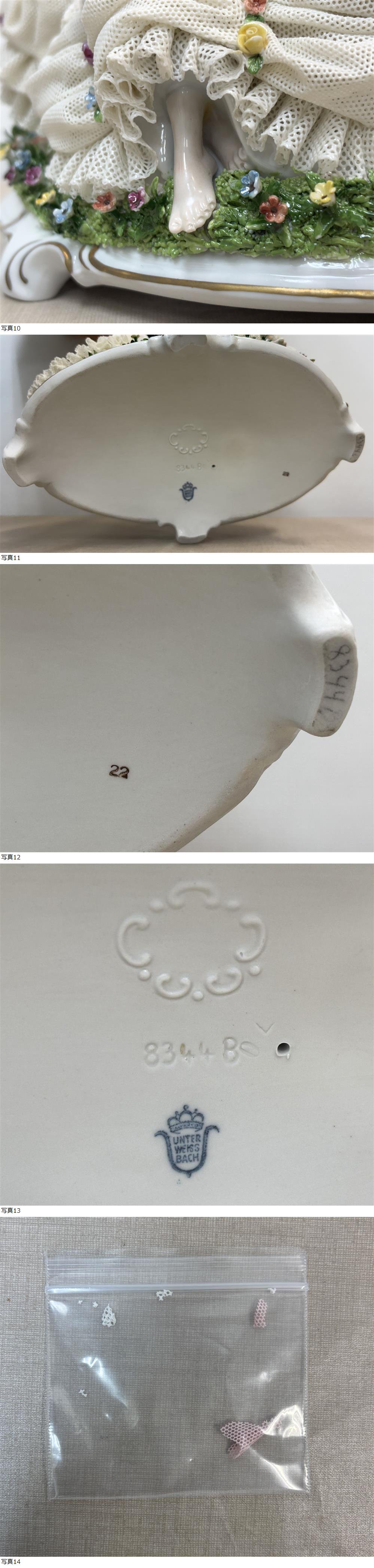 M1444/欠け有 unterweissbach IRISH DRESDEN アイリッシュ ドレスデン ドールズ / 834480 22 ポーセリン フィギュリン 人形 レース 金彩 收藏