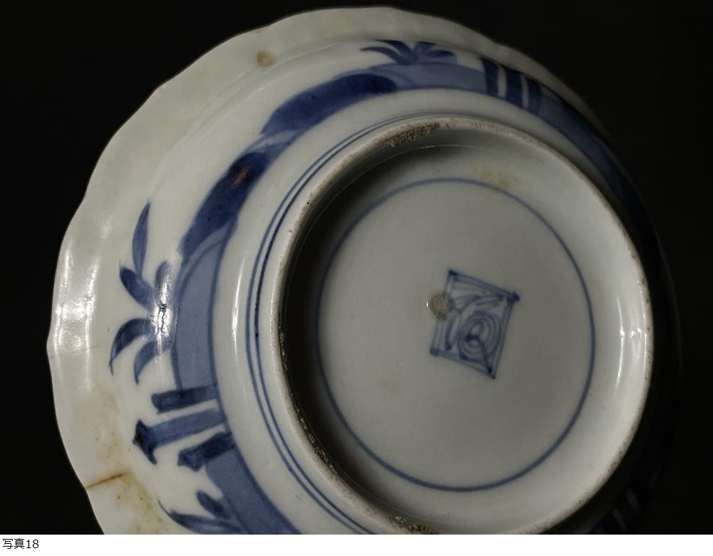 | 古伊万里 染付陽刻輪花皿 藍九谷 江戸期 古染付 渦福 陽刻文 古九谷 |