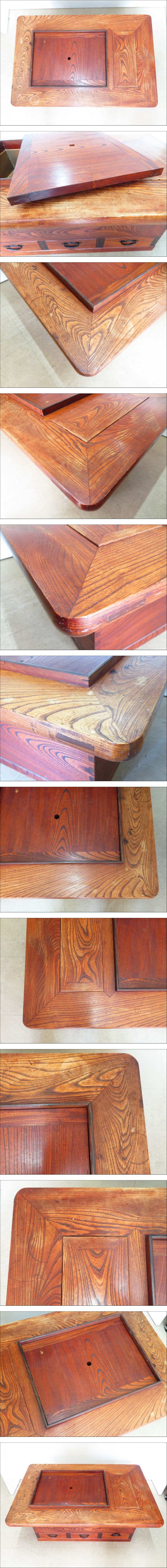 ◆◇時代物 長火鉢 関西火鉢 囲炉裏 長さ90.5cm 奥行60.5cm 高さ36cm 木製 欅材 ケヤキ 小引出し付 座卓 大和火鉢 天板厚2.2cm◇◆ 收藏