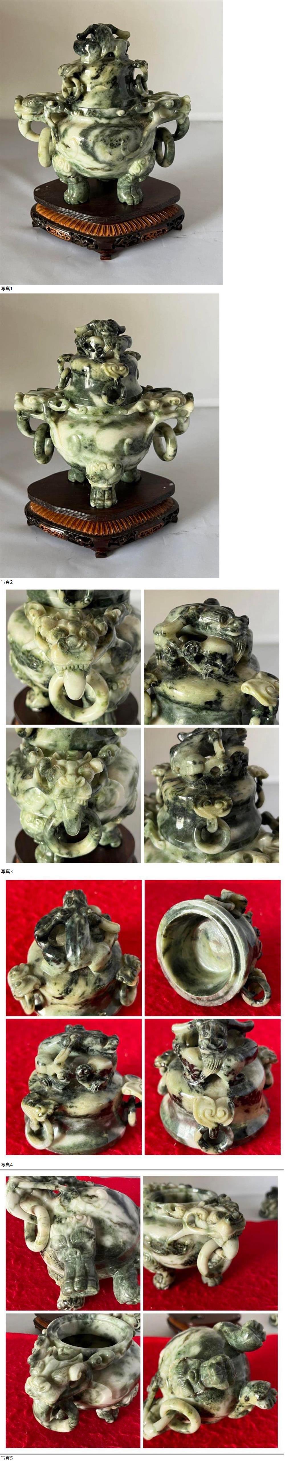 | 清代 古美術 香炉 天然翡翠 置物 彫刻 |