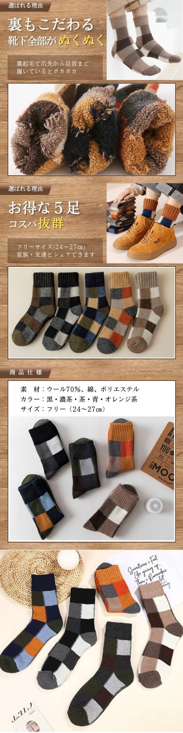 靴下 メンズ ソックス 厚手 5足セット ウール混 男性 まとめ売り 紳士 裏起毛 パイル 冬 暖かい ショート アウトドア 登山 スキー 釣り 收藏