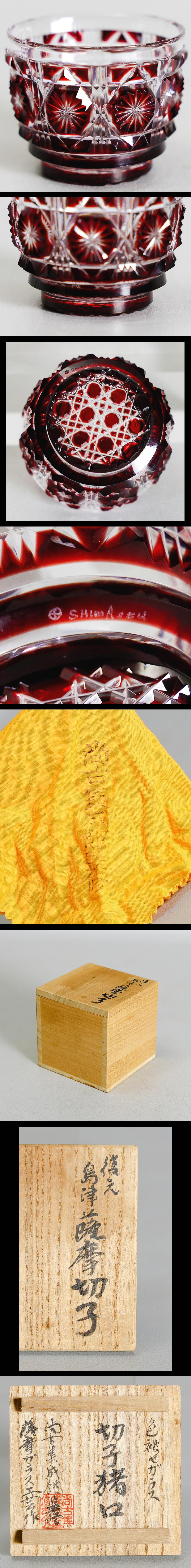 【真作】【WISH】薩摩ガラス工芸「復元 島津薩摩切子 色被せガラス 切子猪口 赤」 尚古集成館監修 共箱 高さ5.5㎝ #26016017 收藏