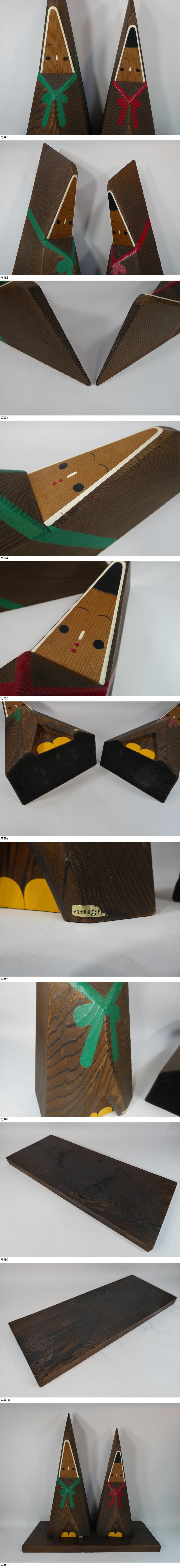 大きな お杉わらべ 高さ42cm&37.5cm 秋田県大館 郷土玩具 秋田杉 雪ん子 藁帽子/検彩色木彫 創作こけし インテリア オブジェ 店飾り レトロ 收藏