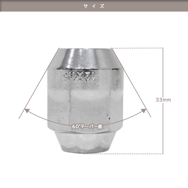 ю ホイールナット [M12×P1.5 21HEX 60度テーパー 全長33mm メッキ ][ 20個 ] スチール製 袋ナット トヨタ/ホンダ/マツダ/三菱/ダイハツ 收藏