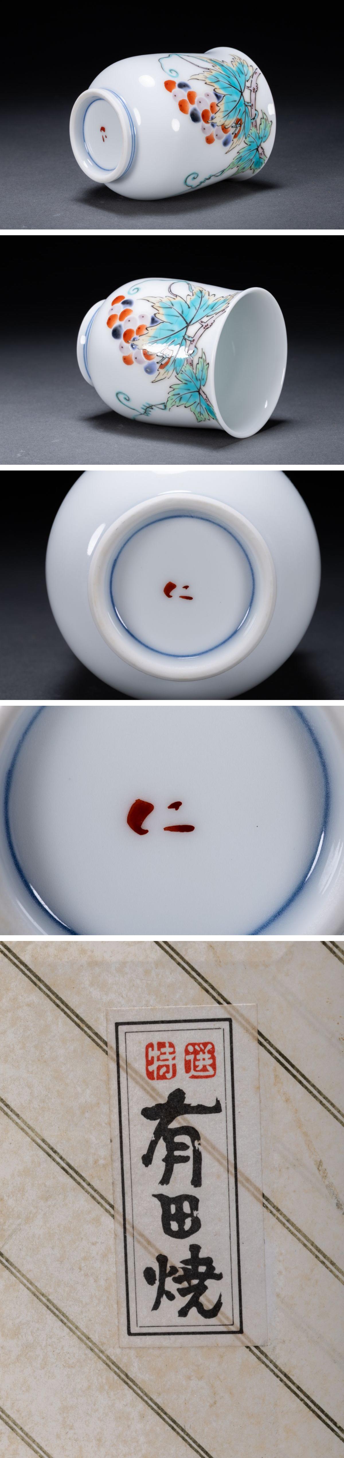 【雲錦】1円から 時代物 伊万里・有田焼 色絵葡萄紋茶碗 茶煎度具 古美術 骨董品7L6-621S 收藏