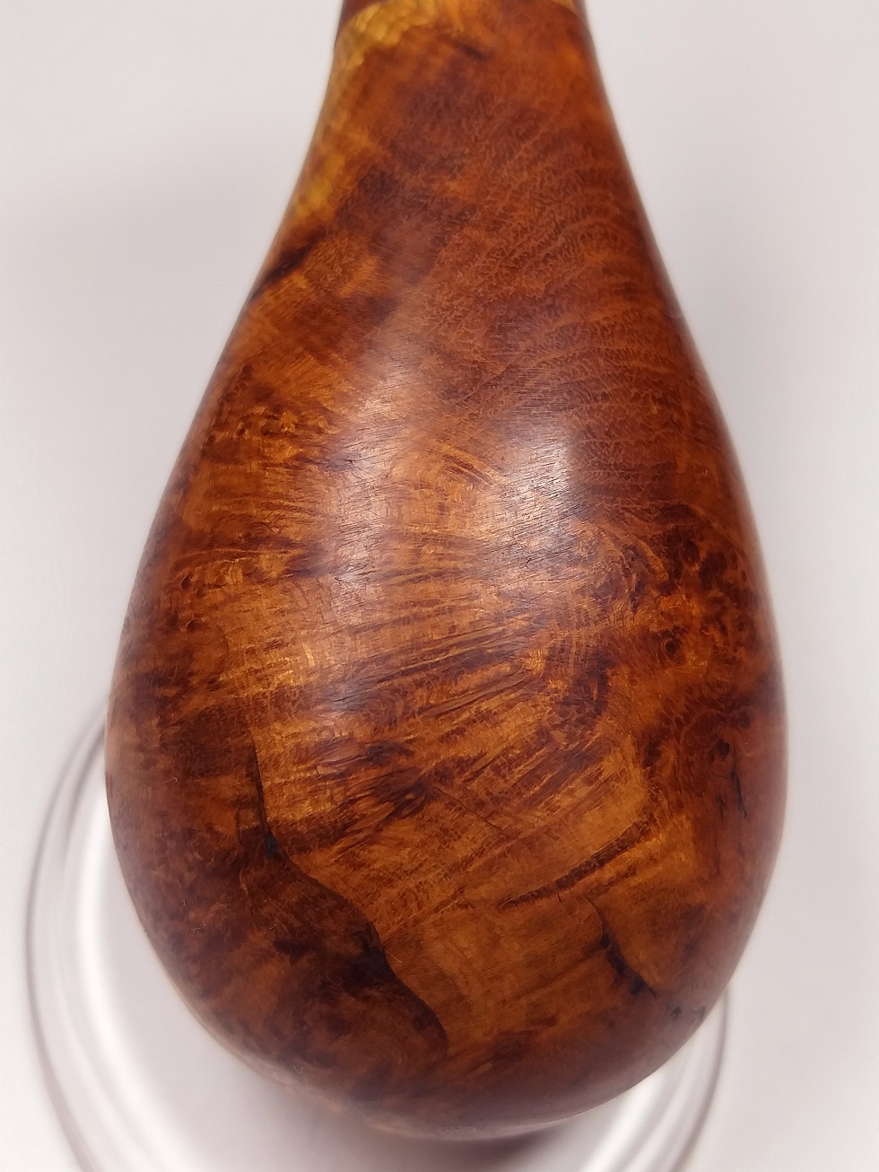 現在出品に使用の麻梨木根部無垢赤芯材老料瘤材の特徴は:①油性が、非常に良質で、②密度が最も高く、硬度が高く、成長速度が非常に遅くです。”鉄木”と呼ばれております。石のように硬いです。③色合いが、最極上の純正な赤茶色です。④重厚感が充分あります。水に入れると沈んでしまいます。⑤瘤材の紋理は、非常に綺麗です。⑥4、50年前に収蔵した老料瘤材を使用しておりますので、最高の熟成状態です!