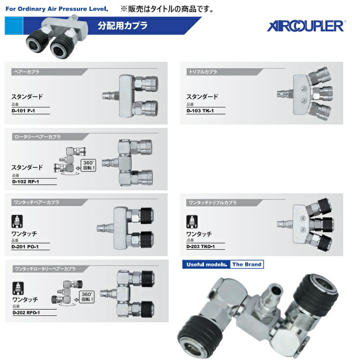 マッハ MACH常圧空気圧力用エアーカプラ分配用カプラワンタッチペアカプラ D-201 PO-1■特長・ワンタッチ:接続が片手でも簡単に取付けできます。