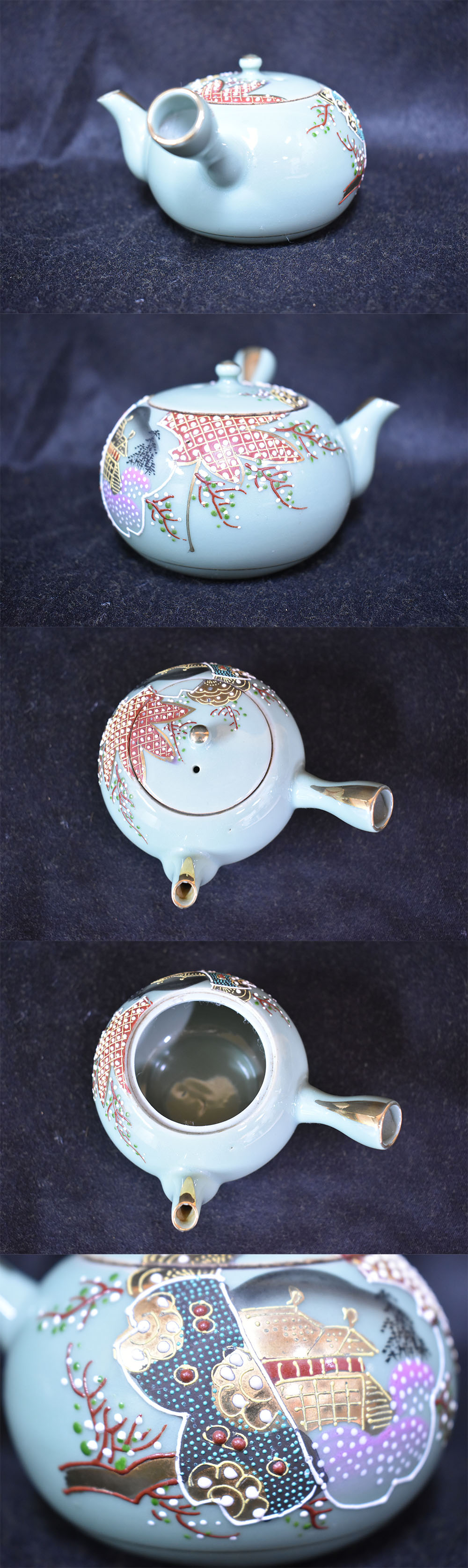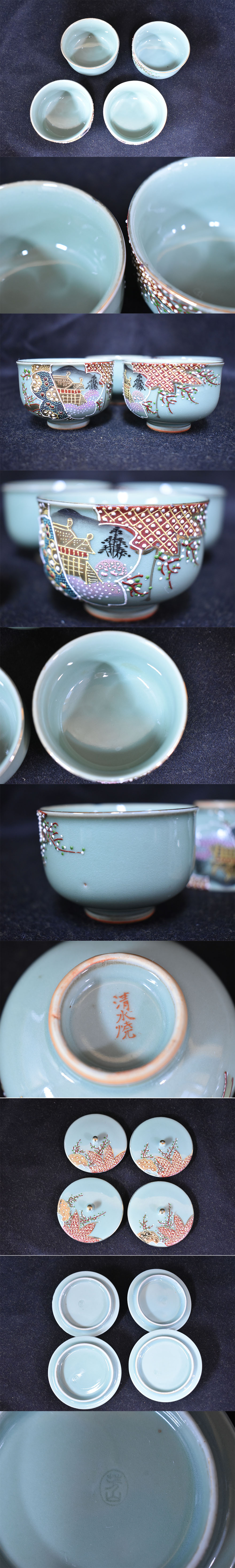 ●清水焼/京焼/青磁/急須/茶こぼし/煎茶碗/4客/茶器セット/煎茶道具/茶器/煎茶器揃/茶道具/四季折々/いっちん技法/U25MT120 收藏