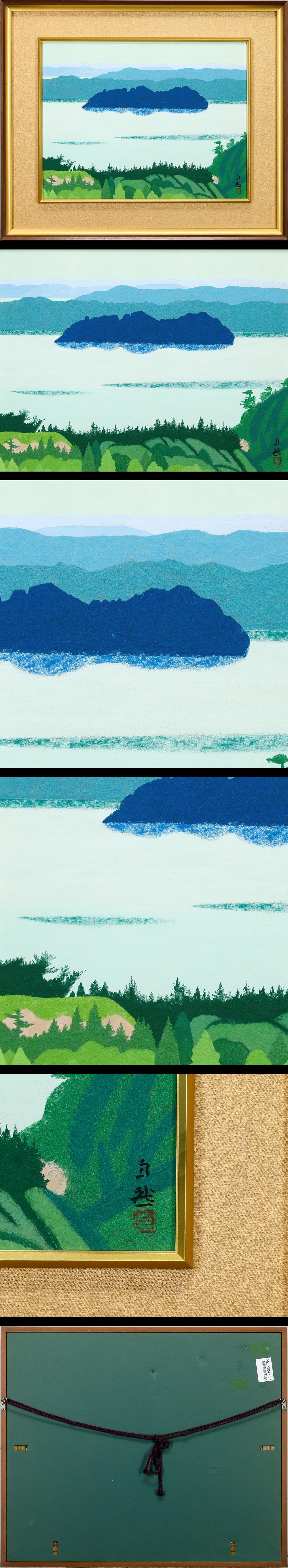 【真作】【WISH】嶋谷自然 日本画 10号 ◆湖上に佇む青の島影 〇日展参与 名古屋芸大名誉教授 師:西山翠嶂 #25123043 收藏