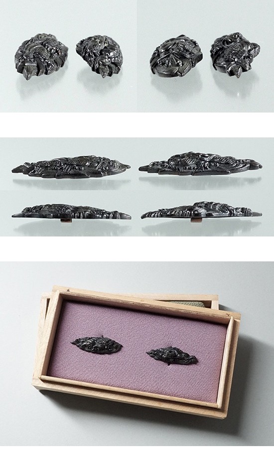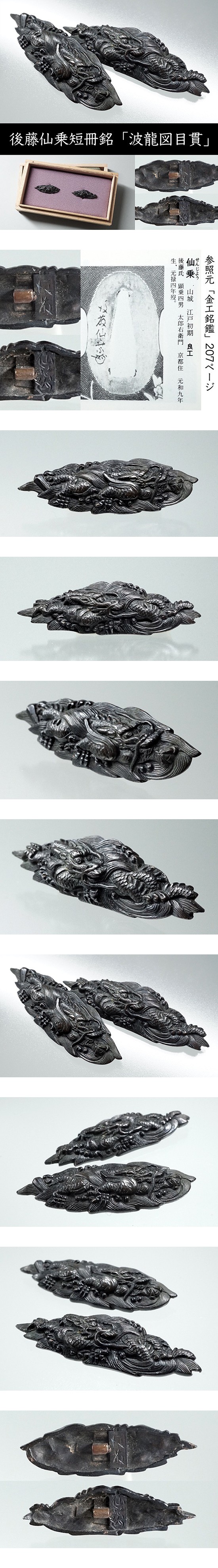 江戸初期 後藤仙乗(花押)短冊銘入目貫「波龍図」赤銅地 精緻細密彫 後藤在銘御家彫 江戸期日本刀剣刀装小道具外装拵 收藏