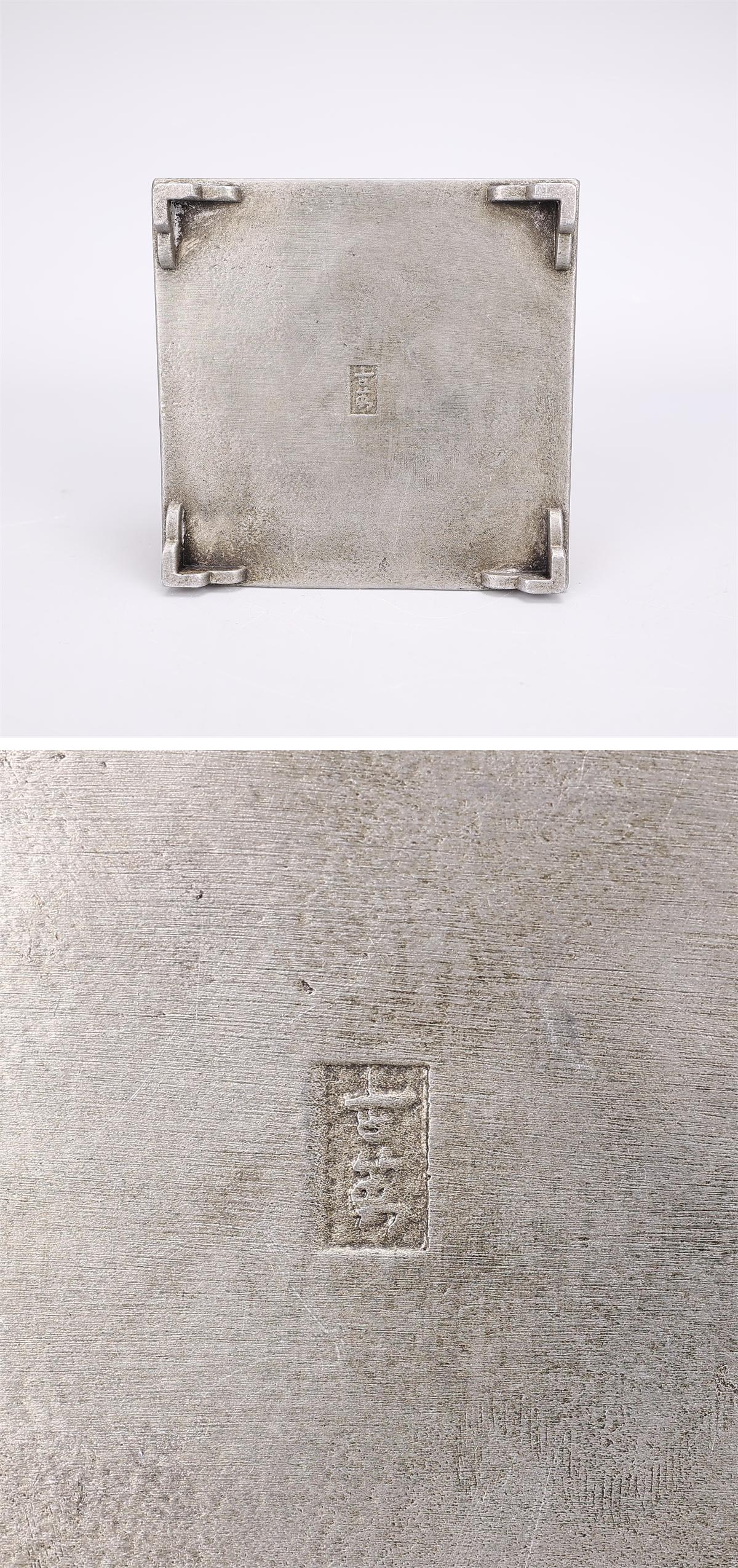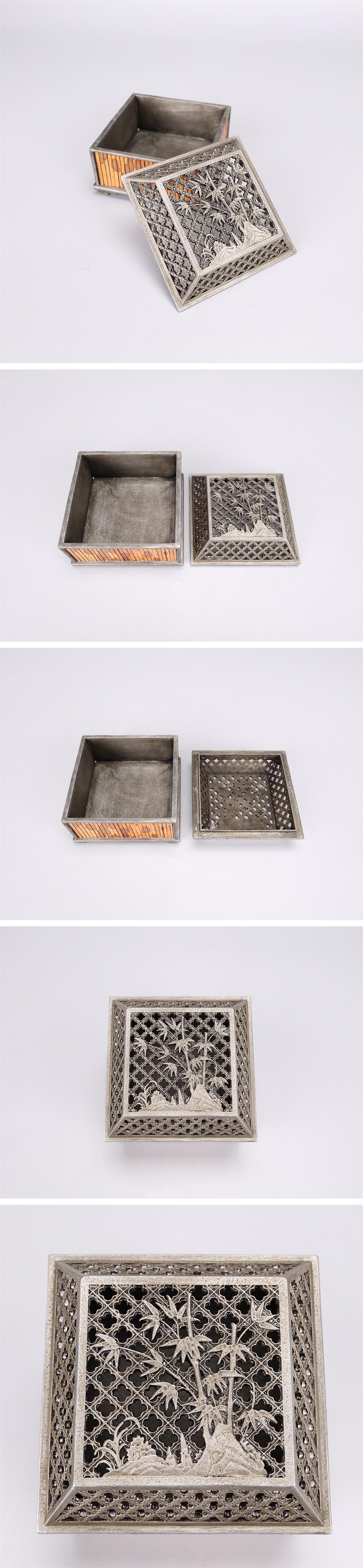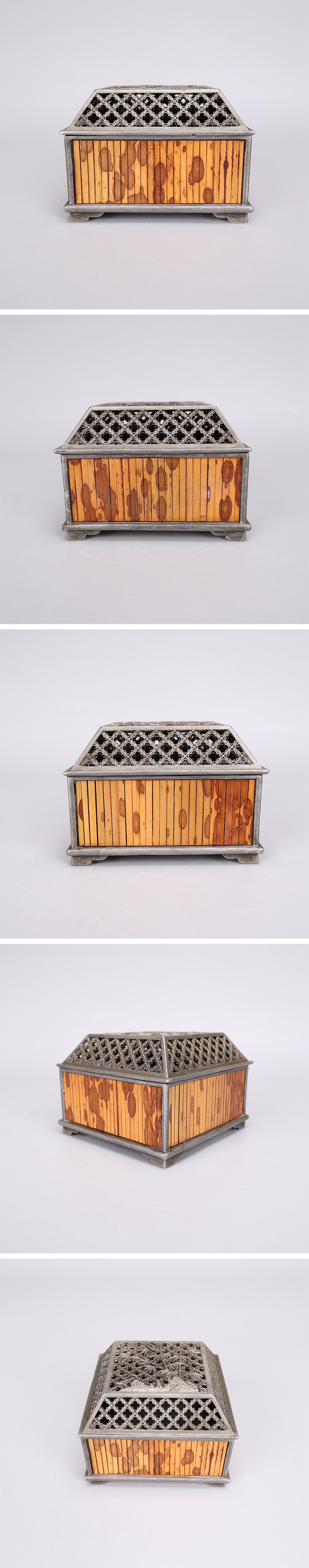 【吉】DB074唐物 【錫製】 竹紋 本斑竹張 方香炉 在銘/美品In! 收藏