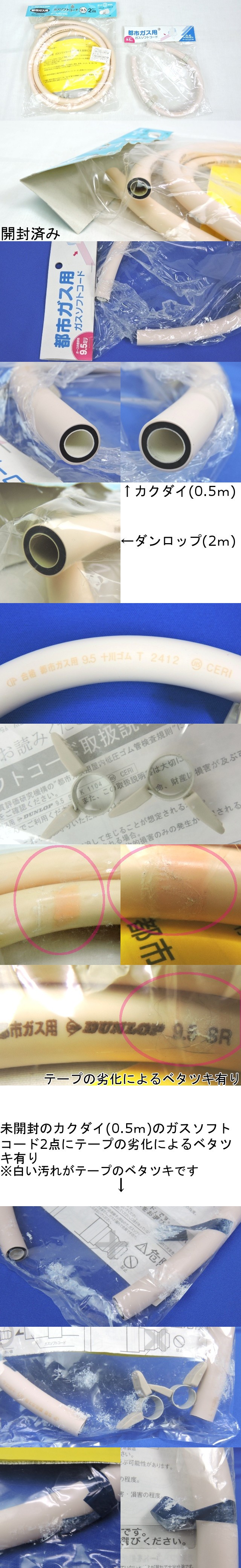 ●【保管品/一部未開封/汚れ有り】ダンロップ KAKUDAI 都市ガス用 ガスソフトコード 内径9.5mm 長さ0.5m&2m 4点セット 收藏